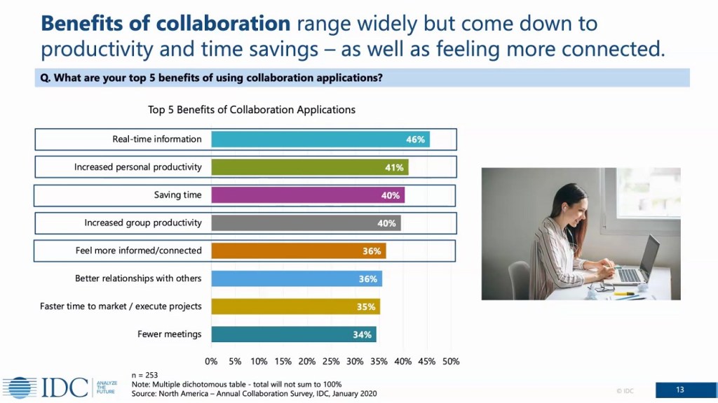 The benefits of collaboration solutions of course can save time ( and hopefully they do ) but there are more impacts: