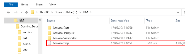 SPPPCRYA9X -> The tmp files are created outside of the Data folder if your Domino Data folder structure has a dot (.)