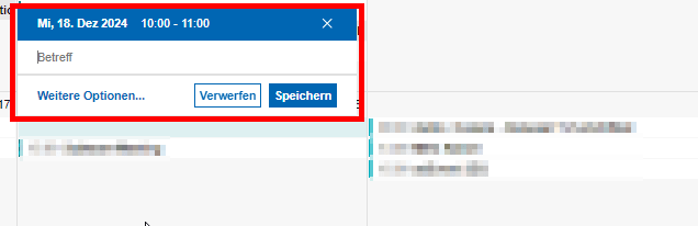 Here you can enter a subject and afterwards click “Save”. Now the calendar entry is created and saved as appointment. Unfortunately the settings from your calendar profile ( e.g. the notification time, .. ) are not moved into the newly created appointment. So if you have to modify this entry you will have to open the appointment and adjust the settings as requested.